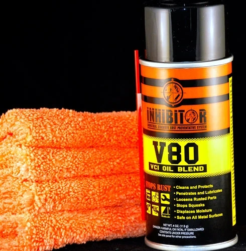 The Inhibitor V80 VCI/OIL Blend is the most scientifically advanced formula for protecting and lubricating metal surfaces and equipment from rust and corrosion. We start by blending our premium oil with the most advanced rust preventatives available. We then blend in our special Inhibitor Vapor Technology (VCI) providing the ultimate protection from the harshest of elements. Our V80 formula is able to penetrate into the smallest cracks and crevices while our vapor technology blends with moisture and oxygen to stop rust and corrosion in its tracks. Our V80 formula is designed for long-term protection and should be the last application prior to storing any metal gear or equipment. WILL NOT GUM UP.